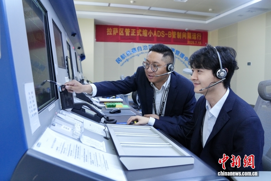2025年是西藏自治區(qū)成立60周年,也是西藏民航通航60周年。在民航空管領(lǐng)域,管制員肩負(fù)指揮飛機(jī)運(yùn)行、保障飛行安全等重要職責(zé),具體分為區(qū)域管制員、塔臺(tái)管制員等角色。在位于拉薩貢嘎國際機(jī)場(chǎng)的民航西藏空管中心,59名漢族和18名藏族管制員通力合作,以“老帶新”“傳幫帶”,在守護(hù)藍(lán)天的崗位上譜寫了漢藏一家親的故事。圖為7月22日,區(qū)域管制員強(qiáng)旦(左,藏族)指導(dǎo)見習(xí)管制員王軒(右)發(fā)布指令。西藏地處高原地區(qū),氣象復(fù)雜多變,對(duì)區(qū)域管制員的綜合協(xié)調(diào)應(yīng)對(duì)能力要求高,見習(xí)管制員的能力提升離不開師傅的殷切指導(dǎo)。中新社記者 張祥毅 攝
