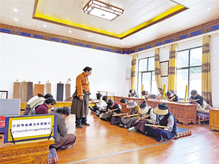發(fā)展的腳步并未停止。華電駐村黨員著力深化“黨建+村集體經(jīng)濟”發(fā)展機制,推動產(chǎn)業(yè)提檔升級。一方面,全力打造“精品木刻”品牌。積極開發(fā)融合“古智藏文書法”等元素的木刻文創(chuàng)產(chǎn)品,將產(chǎn)品種類拓展至30余種,提升藝術價值和市場競爭力。另一方面,推動產(chǎn)業(yè)融合。木松民族手工藝公司已從單一的木刻作坊,發(fā)展成為集工藝品雕刻、藏香制作、書法創(chuàng)作、技能培訓、旅游于一體的綜合性致富產(chǎn)業(yè)聚集地,產(chǎn)業(yè)鏈條不斷延伸,村民的日子也越過越紅火。