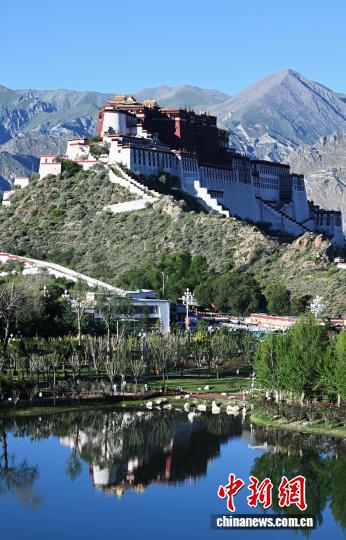 圖為拉薩團(tuán)結(jié)公園水系倒映布達(dá)拉宮。貢嘎來松 攝