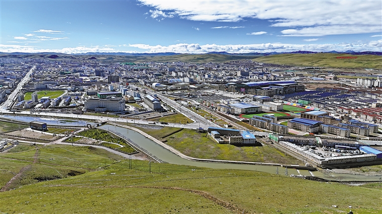 循小徑蜿蜒而上,那曲鎮(zhèn)的輪廓漸次清晰,如畫卷般在腳下鋪展。駐足回望,高樓鱗次櫛比,長街車水馬龍。憶往昔土房帳篷組成的“大村子”,看今朝草原都市的燈火璀璨,眼前這拔地而起的發(fā)展盛景,怎不令人心潮澎湃?