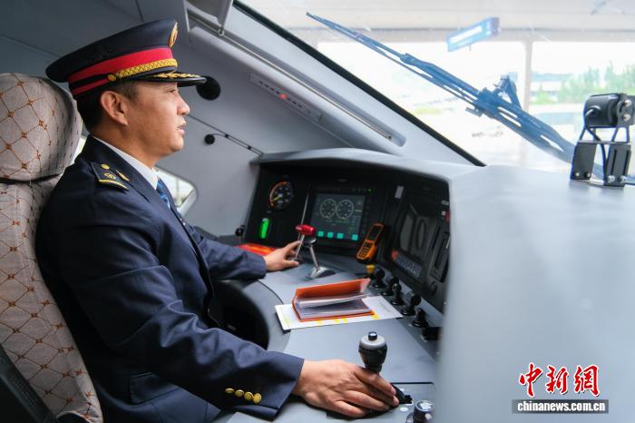 圖為6月20日,斯朗旺扎在高原復(fù)興號(hào)駕駛室,如今他已成為高原復(fù)興號(hào)動(dòng)車組資深司機(jī)。中新網(wǎng)記者 江飛波 攝