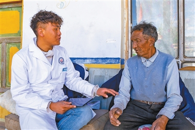 走進(jìn)大門,他一邊和老人寒暄,一邊從包里拿出血壓計(jì)?!斑@兩個(gè)月血壓變化不大,咱們還要繼續(xù)保持健康生活習(xí)慣,不要吃太多油鹽?!绷客暄獕?,索朗丹增細(xì)細(xì)叮囑。