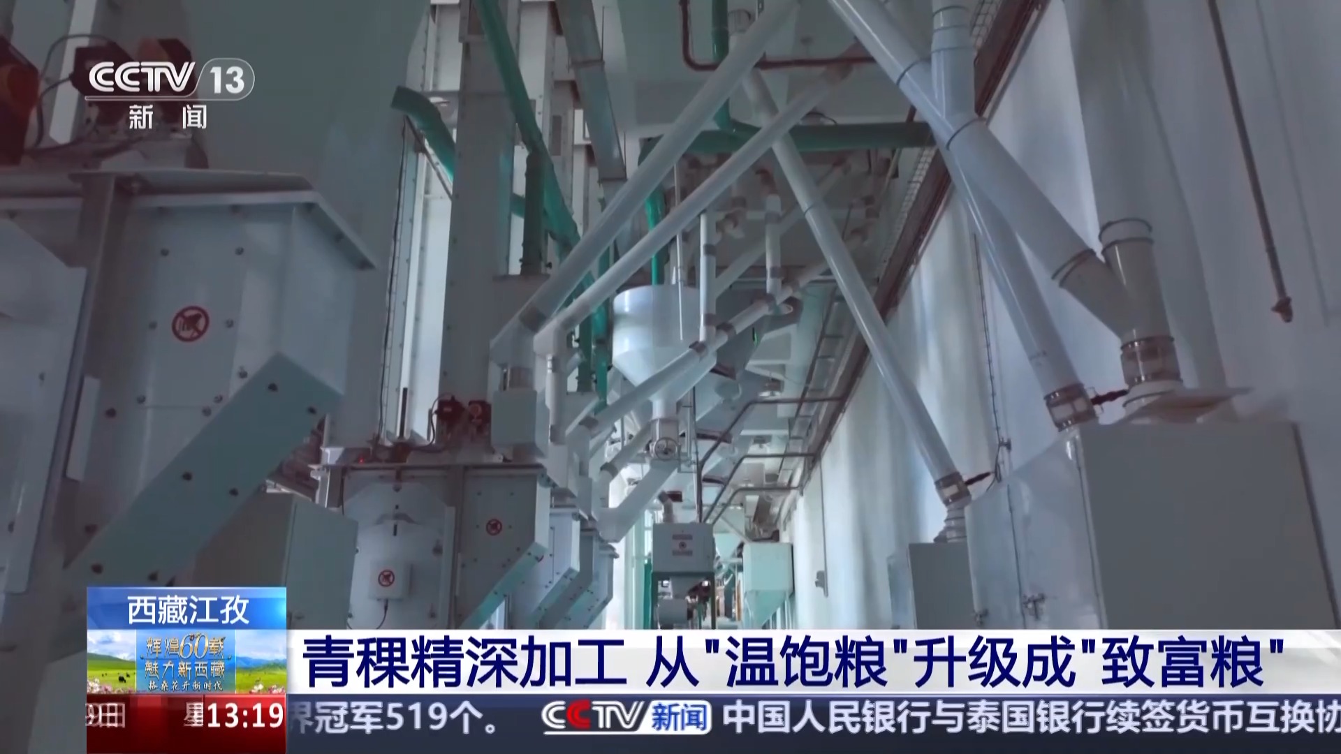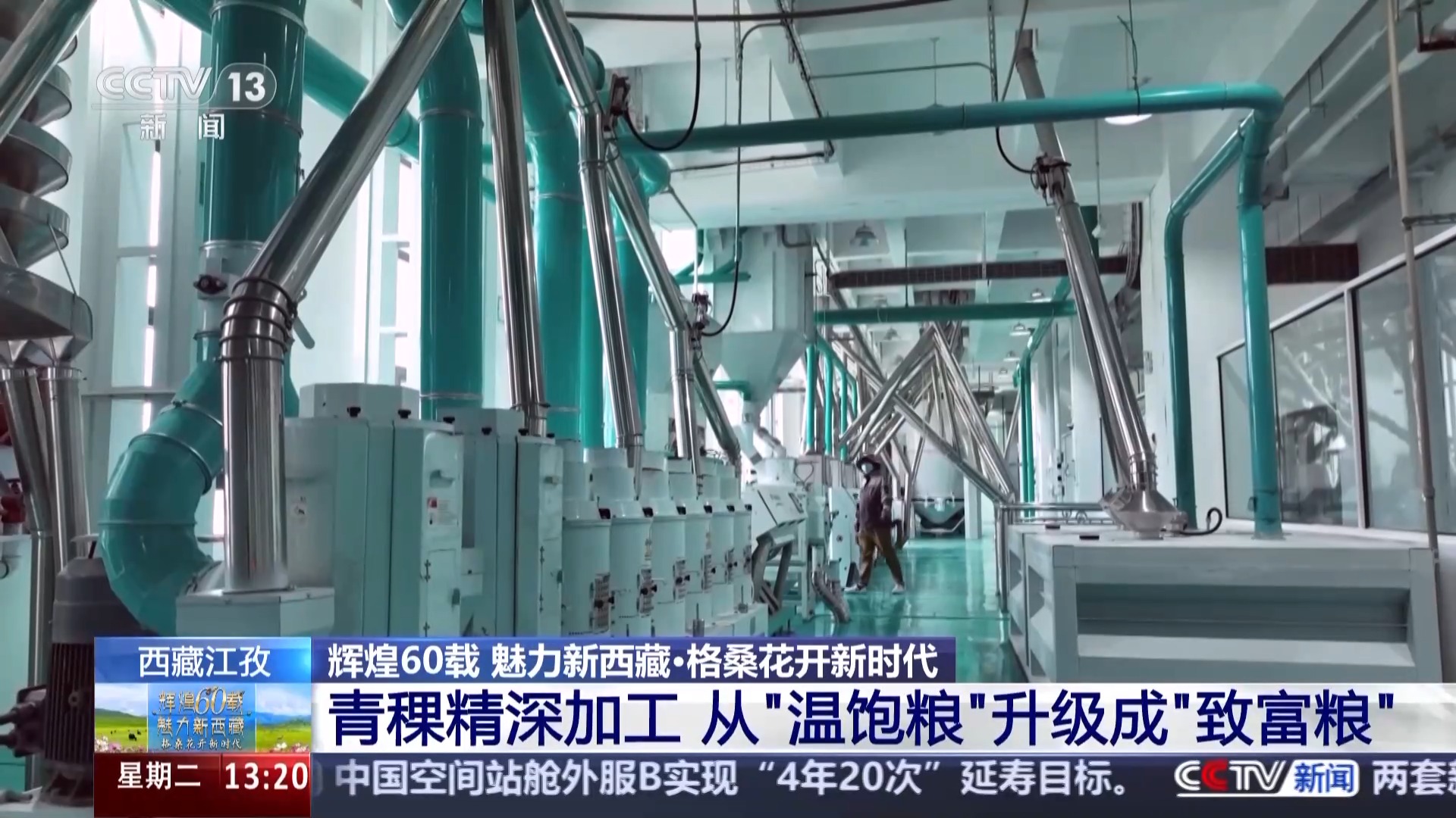 總臺記者 于晨:我現(xiàn)在是在江孜縣的一家專注于青稞產(chǎn)品研發(fā)的科技公司,去年9月,全國首條青稞谷物專用生產(chǎn)線在這里落地,填補了行業(yè)的空白,這讓青稞的得粉率由原來的60%以下提升至了70%以上。
