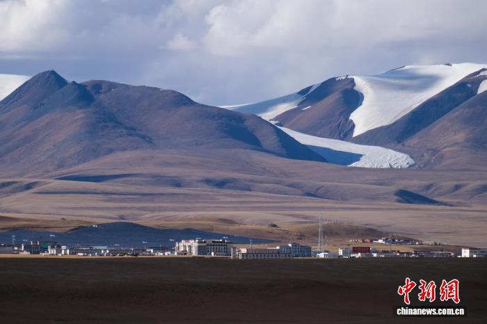 圖為2024年10月2日,遠眺西藏自治區(qū)那曲市雙湖縣城和縣城附近的冰川。江飛波 攝