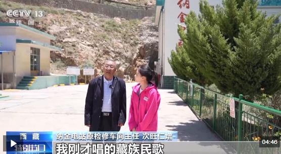 納金電站原檢修車間主任 次旺仁增:我剛剛唱的藏族民歌,就是我身后的納金電站。我是1962年從牧區(qū)過(guò)來(lái)的,拉薩以前因?yàn)殡姴粔?,老城區(qū)都是點(diǎn)蠟燭,或者盆子里頭一半是水一半是油那樣點(diǎn),但那個(gè)燈可以說(shuō)你看不到我,我看不到你。
