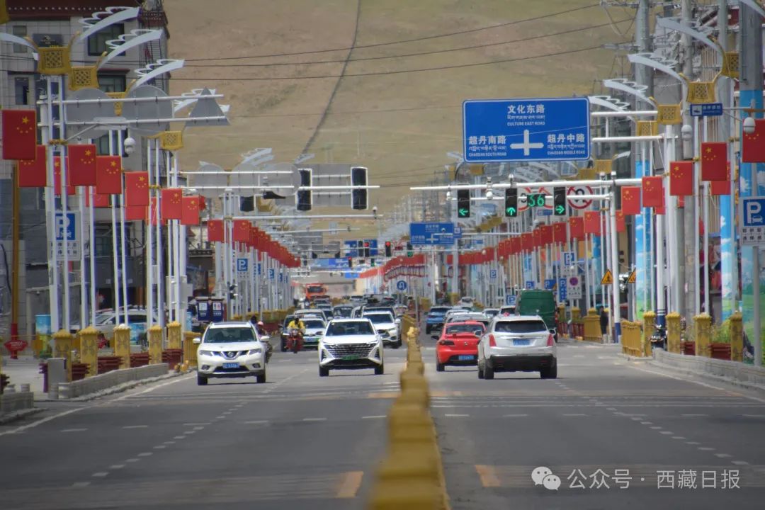 圖為昌都市昌都西路濃厚的大慶氛圍。記者 平措郎加 貢秋曲措 攝
