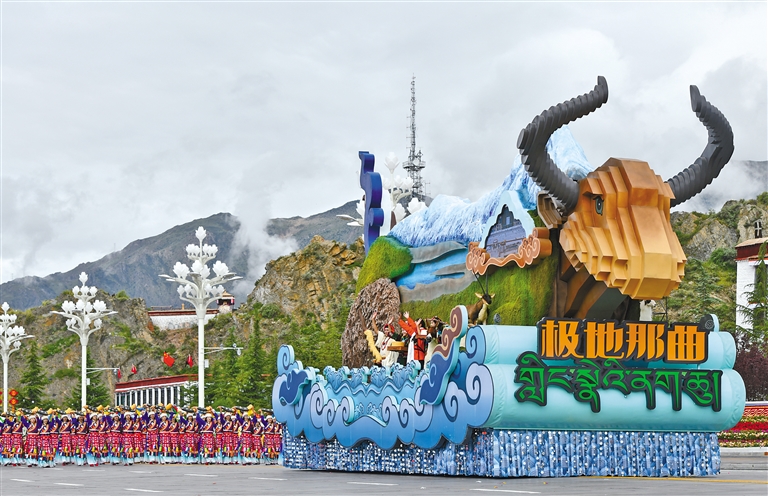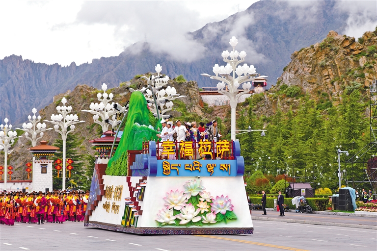 “幸福拉薩”彩車。本網(wǎng)記者 唐斌 攝