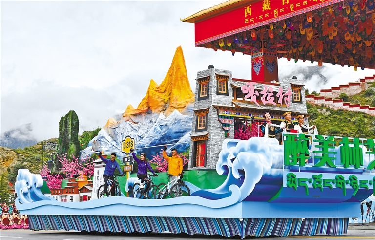 “藏源山南”彩車。 本網(wǎng)記者 唐斌 攝