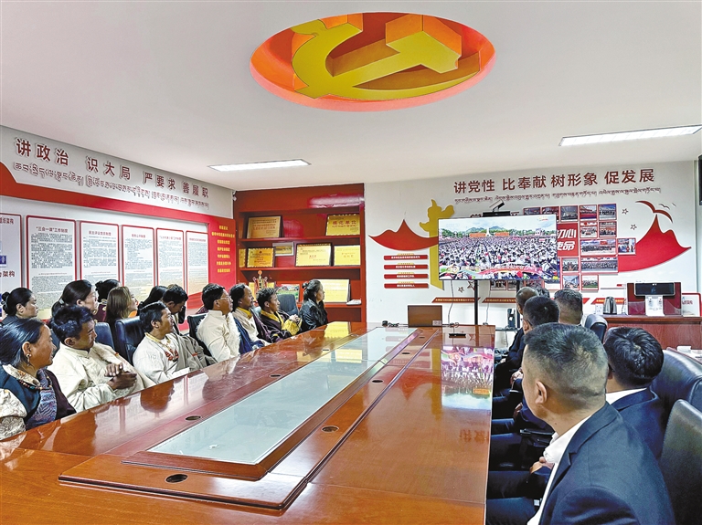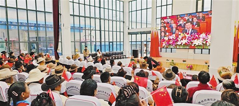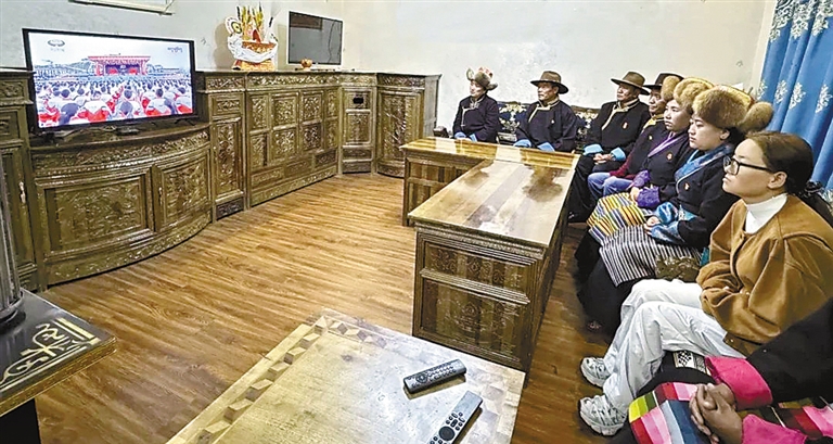 日喀則市謝通門縣仁欽則鄉(xiāng)倫珠孜村的村民們集中觀看了現(xiàn)場(chǎng)直播,現(xiàn)場(chǎng)不時(shí)傳出熱烈掌聲。老黨員仁增多吉感慨萬千:“我深切體會(huì)到了沒有中國共產(chǎn)黨就沒有社會(huì)主義新西藏,就沒有我們今天的幸福生活。我將始終維護(hù)祖國統(tǒng)一,加強(qiáng)民族團(tuán)結(jié),堅(jiān)定不移聽黨話、矢志不渝跟黨走。”