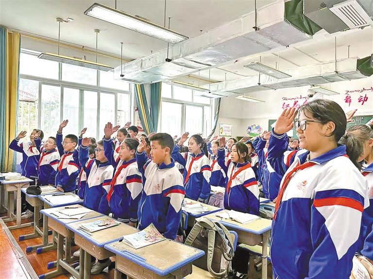 昌都市實(shí)驗(yàn)小學(xué)六年級(jí)五班學(xué)生加永洛丁在教室里向記者分享了自己的感受:“看到電視里的畫面,我特別驕傲。聽爺爺講,舊西藏生活很苦,現(xiàn)在我們有這么好的學(xué)校,生活也越來越好,我要努力學(xué)習(xí),讓西藏變得更美麗!”