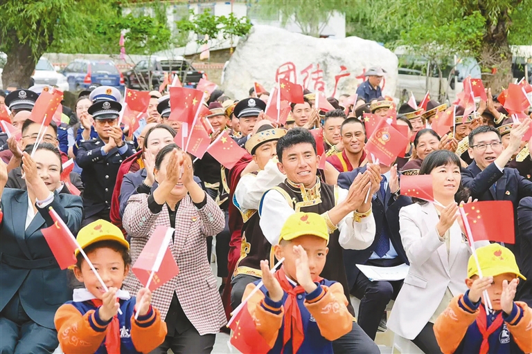 山南市隆子縣玉麥鄉(xiāng)干部群眾、派出所民警等來到愛國守邊先進(jìn)事跡展館,集中收聽收看了慶祝大會(huì)直播。玉麥村的大學(xué)生尼瑪次仁說:“當(dāng)看到山南彩車上‘家是玉麥,國是中國’的標(biāo)語時(shí),我感到非常驕傲與自豪。作為新時(shí)代青年,我要傳承好發(fā)揚(yáng)好愛國守邊精神,時(shí)刻準(zhǔn)備著到祖國和人民最需要的地方去。”