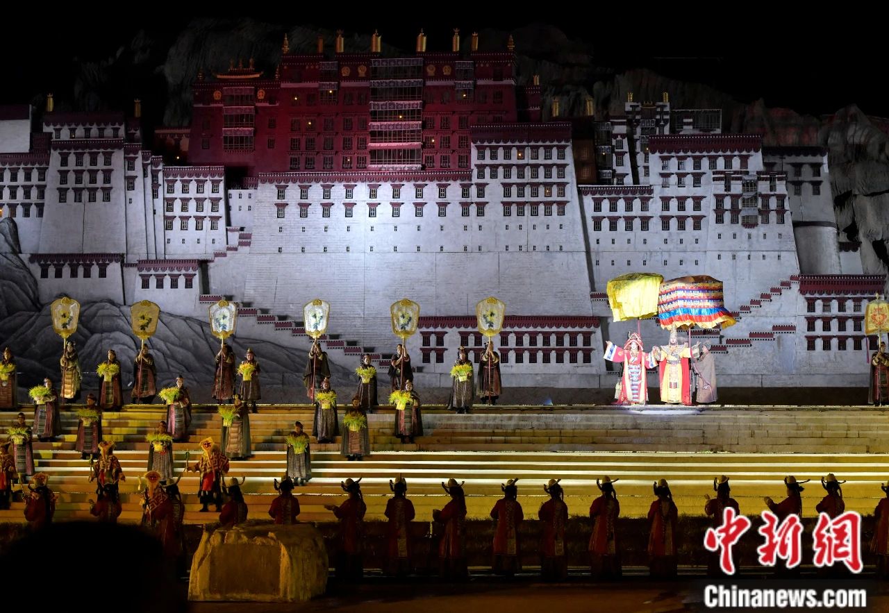 圖為大型史詩(shī)劇《文成公主》演出現(xiàn)場(chǎng)。中新社記者 李林 攝