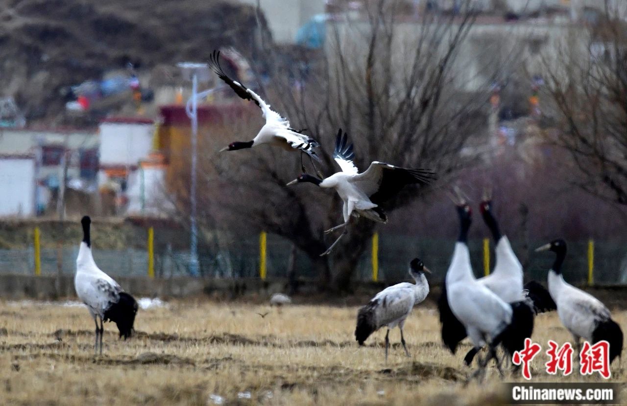 圖為前往拉薩林周縣越冬的黑頸鶴。中新社記者 李林 攝