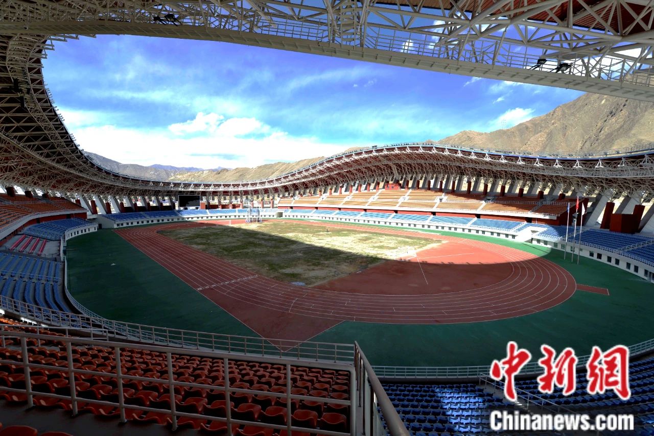 2014年,拉薩文化體育中心竣工,是世界海拔最高現(xiàn)代化體育場(chǎng)館。圖為拉薩體育場(chǎng)內(nèi)景。中新社記者 李林 攝