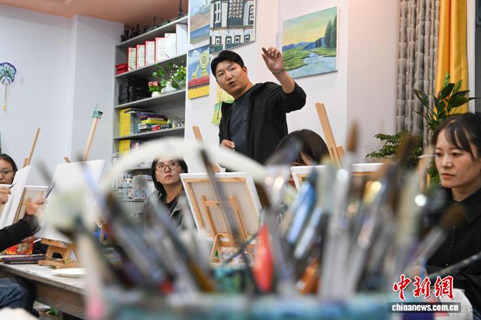 9月1日,2025年西藏自治區(qū)拉薩市第二期“青年夜校”正式開班。圖為夜校學(xué)員在上美術(shù)課。中新社記者 貢嘎來松 攝