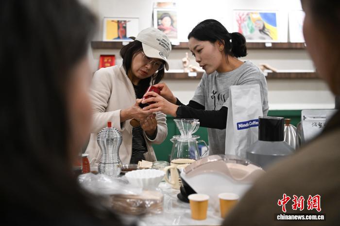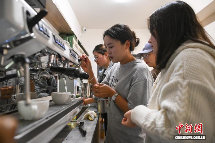 9月1日,2025年西藏自治區(qū)拉薩市第二期“青年夜?!闭介_班。圖為夜校學(xué)員在上咖啡制作課。中新社記者 貢嘎來松 攝