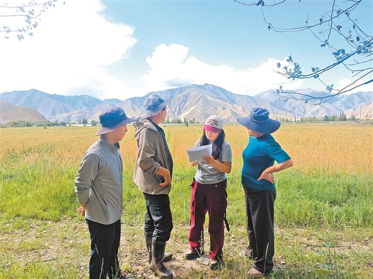“五彩梅朵·曲水心橋”志愿服務(wù)隊(duì)耐心為村民組長(zhǎng)講解政策。
