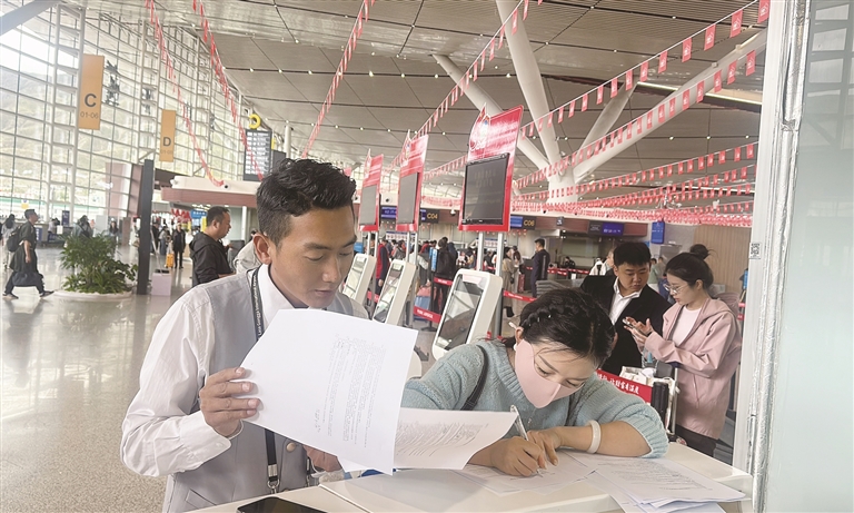 9月14日,萬(wàn)女士按時(shí)抵達(dá)拉薩貢嘎國(guó)際機(jī)場(chǎng)祥鵬航空值機(jī)柜臺(tái)。地面服務(wù)工作人員認(rèn)真查看了《動(dòng)物檢疫合格證明》、寵物疫苗注射證明等材料,迅速為萬(wàn)女士辦理了相關(guān)乘機(jī)手續(xù)。隨后,工作人員全程提供陪同服務(wù),先與機(jī)場(chǎng)安檢部門(mén)積極協(xié)調(diào),幫助萬(wàn)女士和寵物高效通過(guò)安檢;接著引領(lǐng)萬(wàn)女士登機(jī),并與航班客艙經(jīng)理做好詳細(xì)交接。
