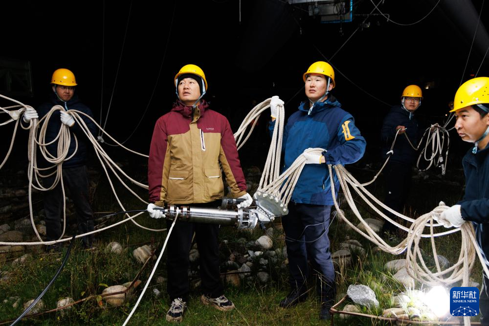 9月18日,“極目一號”浮空艇大氣觀測試驗現場,科研人員在操作鼻系索。新華社記者 金立旺 攝
