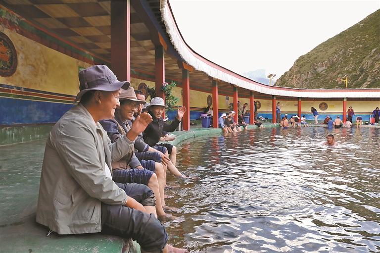 漫步在雪巴村,寬闊的柏油路蜿蜒向前,一座座民宿依山就勢(shì)、錯(cuò)落有致?!艾F(xiàn)在已經(jīng)進(jìn)入溫泉旅游旺季,最高峰一天接待游客達(dá)9000人次,真是人山人海?!瘪v雪巴村工作隊(duì)隊(duì)長(zhǎng)兼第一書(shū)記白瑪仁青告訴記者,憑借沃卡溫泉這個(gè)資源,目前全村有172人直接從事旅游行業(yè),45家民宿蓬勃發(fā)展,戶均年增收近5萬(wàn)元。
