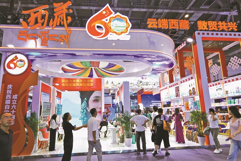 9月25日,第四屆全球數字貿易博覽會(以下簡稱“數貿會”)在杭州大會展中心啟幕,絲路電商館內的西藏展館憑借鮮明的地域特色與發(fā)展亮點,吸引眾多參會者駐足。入口顯眼處高掛西藏自治區(qū)成立60周年慶祝活動徽標,既呼應重要歷史節(jié)點,更彰顯著高原大地以數字為翼、加快推進開放發(fā)展的堅定步伐。