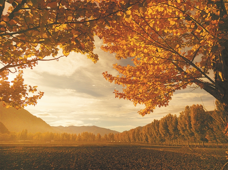 拉薩,秋的筆觸細(xì)膩而溫柔。在拉魯濕地,金黃草甸與碧藍(lán)水面交織如毯,遠(yuǎn)山如黛,倒映成雙。一道白色的窗框,將這片遼闊秋景悄然框取,定格成懸掛于天地間的靈動畫作。偶有候鳥掠過,劃破靜謐天空,留下生動的弧線。不遠(yuǎn)處的宗角祿康公園,楊樹挺拔,葉片被秋風(fēng)染作金黃,簌簌飄落于龍王潭的清波之上。布達(dá)拉宮的背影靜立其間,時光仿佛在此停駐。