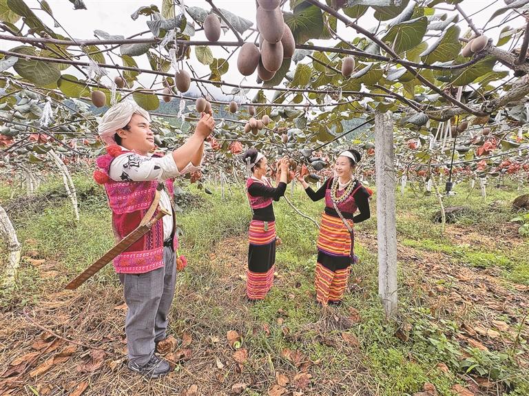 不僅如此,企業(yè)還定期請來農(nóng)業(yè)專家培訓,向村民傳授標準化種植技術(shù)。走進獼猴桃種植基地,正在疏果的村民依青向記者展示新學的技術(shù):“每株保留2到3個果最好,這樣成熟后的果子果形大、甜度高,價格自然也高?!彼胰ツ旮貙W種植,8畝獼猴桃收入5萬多元。以前只會種玉米的她,現(xiàn)在已經(jīng)成了村里的技術(shù)能手。