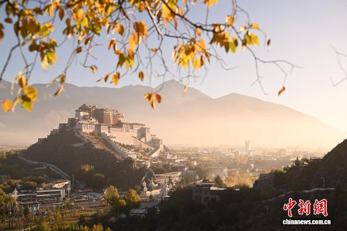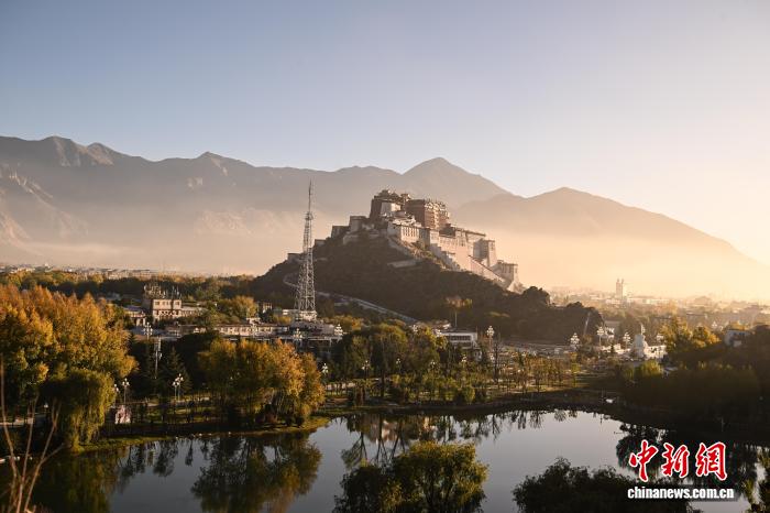 10月22日清晨,薄霧尚未散盡,西藏拉薩團結(jié)公園的黃葉與布達拉宮相映成趣,勾勒出高原秋日的獨特畫卷。中新社記者 貢嘎來松 攝