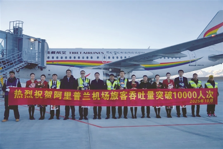 10月20日,西藏航空TV9705航班平穩(wěn)降落在阿里普蘭機(jī)場,作為阿里普蘭機(jī)場2025年第10000名旅客,乘客果果在工作人員的掌聲中走下飛機(jī),接受機(jī)場工作人員敬獻(xiàn)的哈達(dá)和鮮花。這一刻,是阿里普蘭機(jī)場實現(xiàn)年旅客吞吐量“從千到萬”的歷史性跨越。