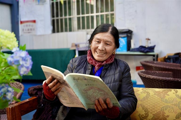 62歲的巴桑卓瑪也在課堂里找回了新的生活樂趣。“以前我不識字,來這兒一年多,不僅學會了讀和寫,還學到了很多新知識。”巴桑卓瑪說,“現(xiàn)在生活好了,就想多學些新東西,每天都盼著來教室,根本不想待在家里。當初也是聽大家都說這里好,我才來的,現(xiàn)在覺得來對了!”