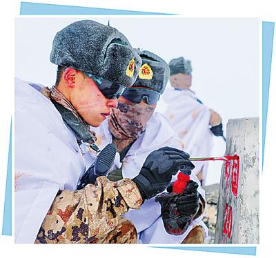 天色漸暗,山頂氣溫驟降,寒風(fēng)呼嘯。官兵們臉上沒有一絲畏懼,年輕的面龐更加堅(jiān)毅,互相鼓勵(lì)的聲音在隊(duì)伍中回蕩,“界碑不遠(yuǎn)了,再加把勁!”