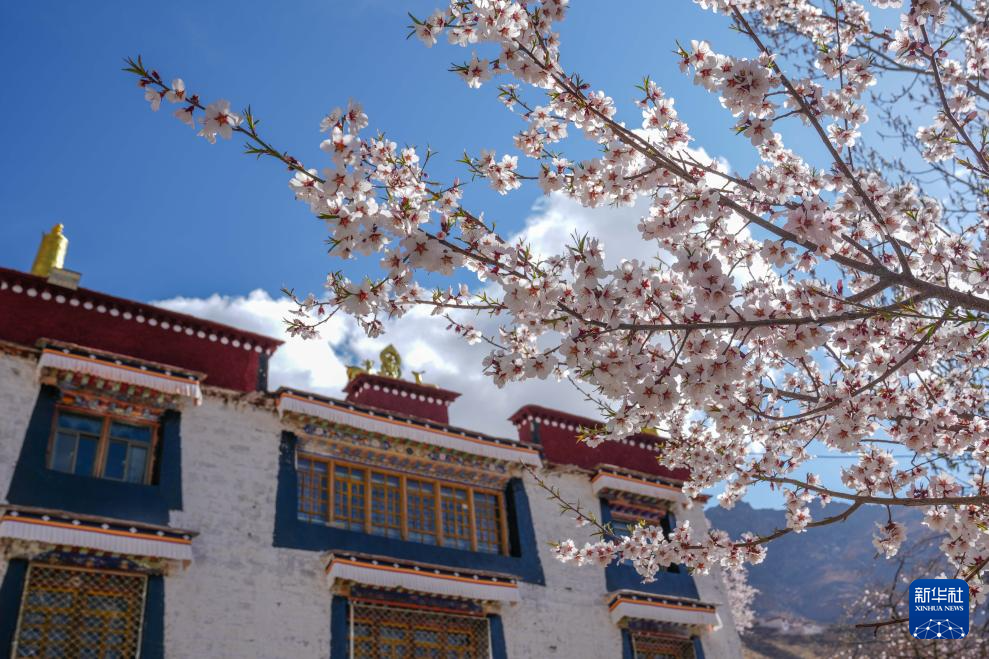 拉薩古剎帕崩崗周圍桃花盛開(kāi)(4月5日攝)。新華社記者 旦增尼瑪曲珠 攝