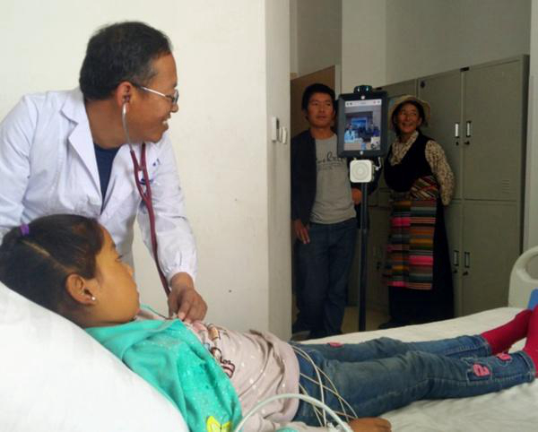 國(guó)家兒童醫(yī)學(xué)中心—上海兒童醫(yī)學(xué)中心的遠(yuǎn)程會(huì)診中心里,重癥醫(yī)學(xué)科的張建醫(yī)師正通過(guò)屏幕與遠(yuǎn)在千里之外的西藏日喀則市人民醫(yī)院重癥科次桑醫(yī)生討論一名極重度貧血的11歲患者的病情。[詳細(xì)] -
