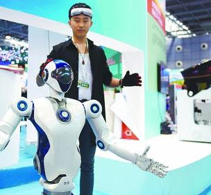 在全國(guó)大眾創(chuàng)業(yè)萬眾創(chuàng)新活動(dòng)周北京會(huì)場(chǎng)主題展上,工作人員在展示一款仿生機(jī)器人。新華社發(fā)