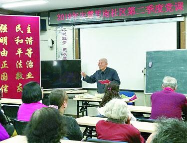 日前,北京市朝陽(yáng)區(qū)亞運(yùn)村街道舉辦了“我為身邊黨員點(diǎn)贊”主題黨日活動(dòng)。圖為被群眾點(diǎn)贊的老黨員黃寅生在給社區(qū)黨員群眾講黨課。曹雷 攝/光明圖片