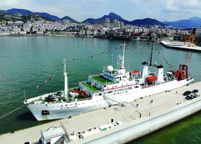 7月31日,在山東省青島市國家海洋局北海分局科考基地碼頭,“大洋一號”科考船準備起航執(zhí)行中國大洋48航次科學考察任務(wù)。新華社記者 李紫恒攝