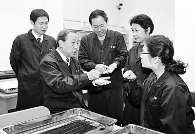 李學(xué)勤(左二)研究團隊正在研究清華簡。資料圖片