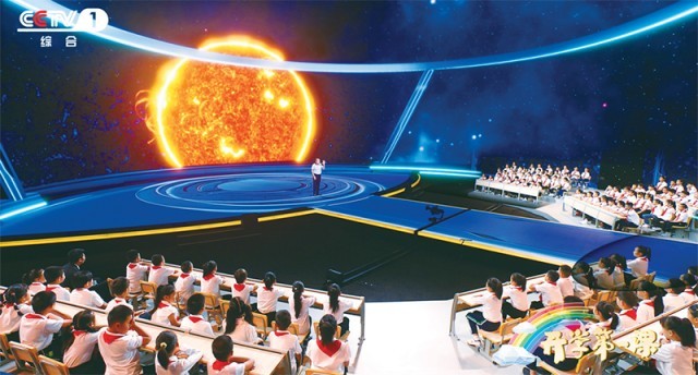 2023年《開學第一課》以“強國復興有我”為主題,從傳統(tǒng)文化、文明探源、生態(tài)文明、鄉(xiāng)村振興、國防教育、科技創(chuàng)新等多個方面,全景展示中國式現(xiàn)代化的萬千氣象。圖為中國科學院高能物理研究所研究員、“拉索”(LHAASO)首席科學家曹臻在向同學們介紹世界上海拔最高、規(guī)模最大的宇宙射線觀測裝置“拉索”的前世今生。 教育部供圖