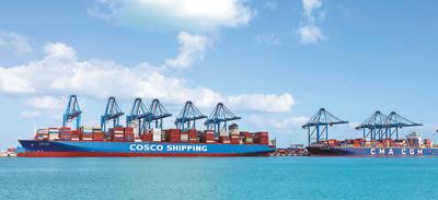 中遠(yuǎn)海運(yùn)港口阿布扎比碼頭由中遠(yuǎn)海運(yùn)港口和阿布扎比港務(wù)局合資建設(shè),并得到絲路基金支持。圖為近日,集裝箱船在中遠(yuǎn)海運(yùn)港口阿布扎比碼頭作業(yè)。