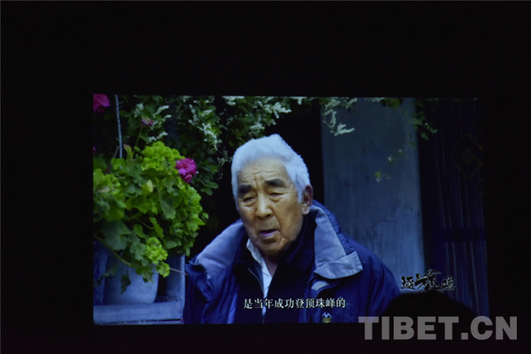 圖為第十八屆“第三極”中國西藏登山大會系列活動之一戶外運動文化互動夜上播放的西藏登山專題片《逐夢云端》畫面 攝影:王媛媛