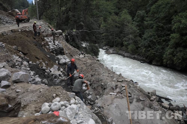 離桑巴亞中原始森林越來越近,看到工人們正在修水泥路,這條路通向村里四朗倫珠、來玉措姆這兩戶最靠近山腳的人家。