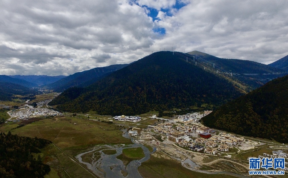 夕陽(yáng)下的魯朗小鎮(zhèn)(10月15日攝)。新華網(wǎng) 柑丹鴦琦攝