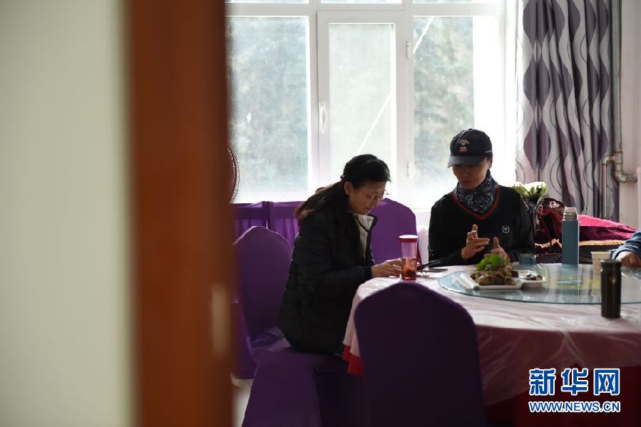 11月5日,來(lái)自蘭州的游客在扎碾公路沿線餐館就餐。新華社記者 戴天放 攝