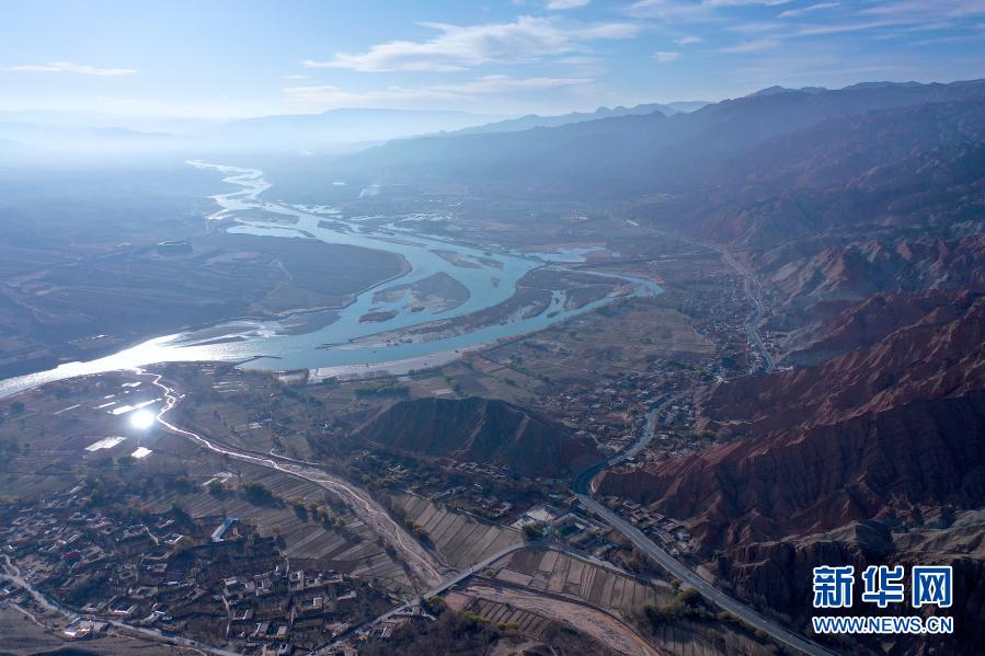冬日時節(jié),青海省海南藏族自治州貴德縣的丹霞地貌在陽光的照耀下,形成一幅美麗畫卷。