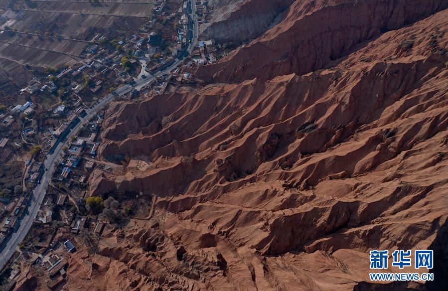 這是11月14日在貴德縣拍攝的丹霞地貌(無人機照片)。新華社記者 吳剛 攝