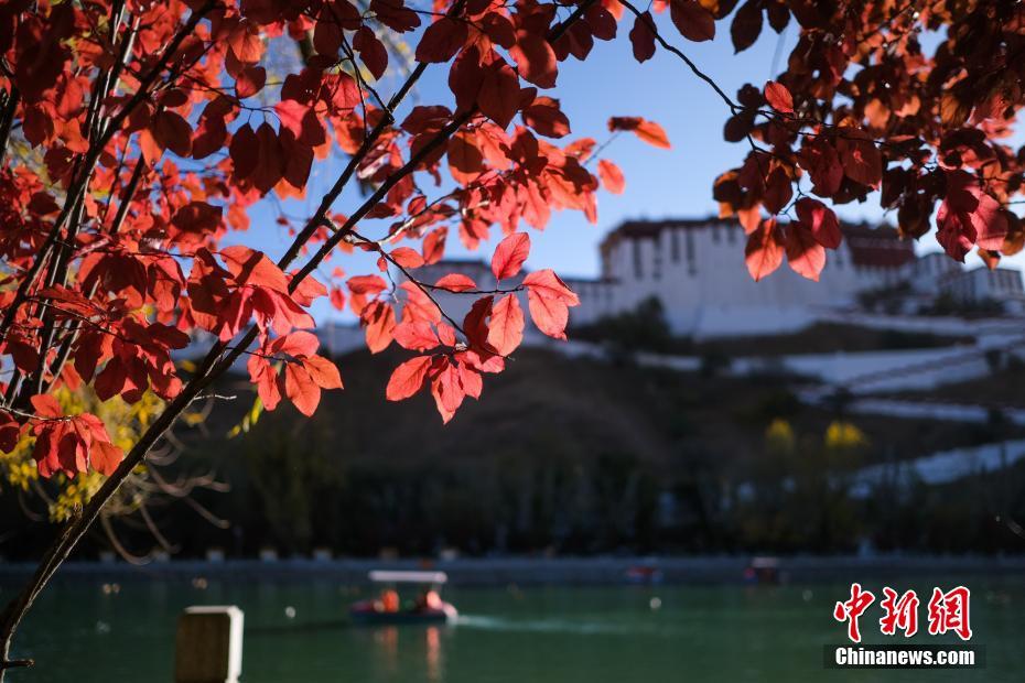 11月17日,秋冬交替,位于西藏拉薩布達拉宮腳下的宗角祿康公園內(nèi)五彩斑斕,景色宜人。中新社記者 何蓬磊 攝