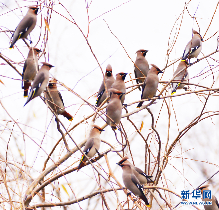 一群太平鳥在樹(shù)枝上休憩。新華網(wǎng)發(fā)(李崇軒攝)