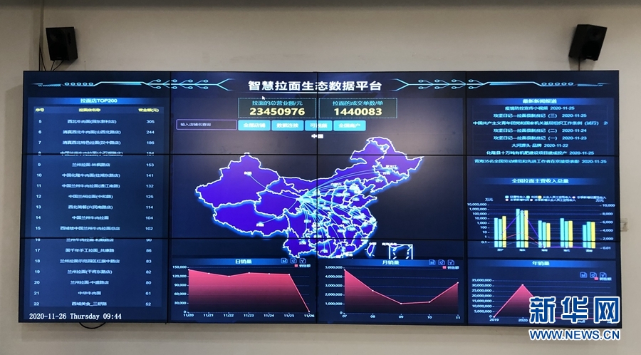 圖為“智慧拉面”生態(tài)數(shù)據(jù)平臺(tái)。新華網(wǎng) 魚昊攝