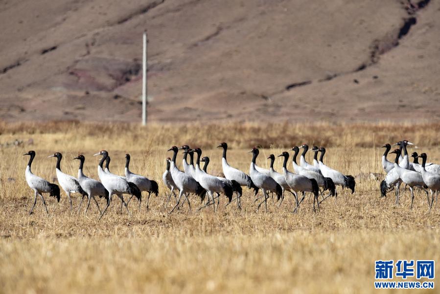 這是12月12日在林周縣黑頸鶴自然保護區(qū)卡孜鄉(xiāng)拍攝的黑頸鶴。新華社記者 黃豁 攝