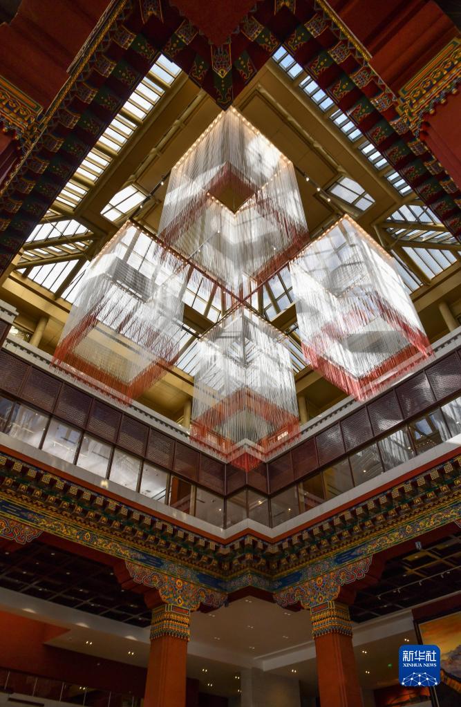 這是西藏博物館內(nèi)部的藏式風(fēng)格建筑裝飾(6月29日攝)。新華社記者 晉美多吉 攝